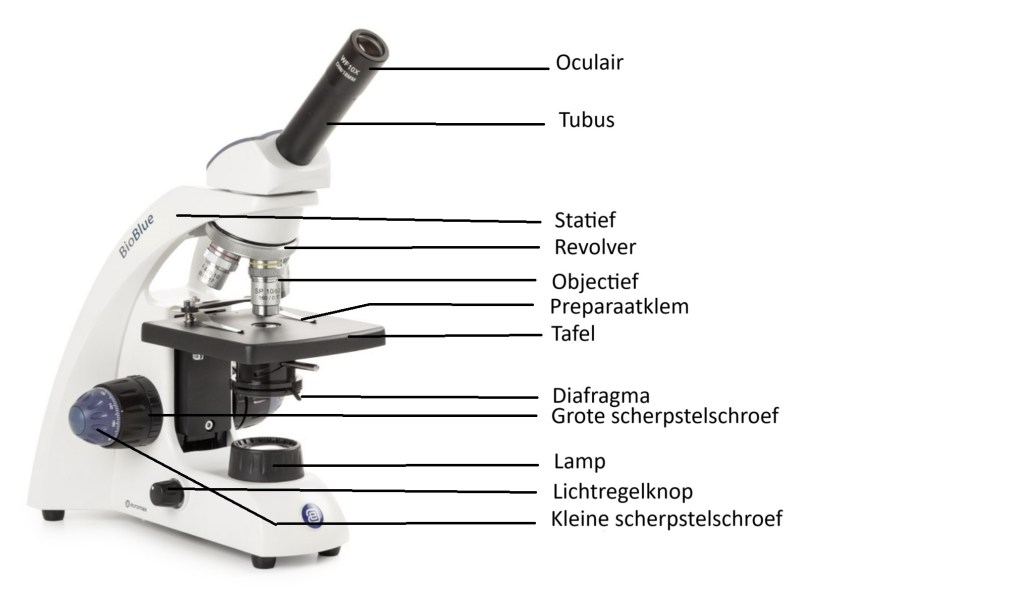 Statief = hier houd je de microscoop aan vast tijdens het lopen